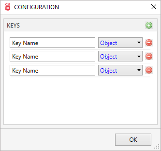 指定したキーに基づいて複数の値を設定できます。SetItems コンポーネントのタイトル バーをダブルクリックして、Key Names ウィンドウにデータを入力できます。